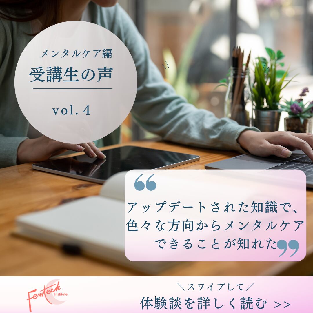 20代での若年性更年期障害を克服した講師が、日々のケア、おすすめのものをお伝えするほか、
